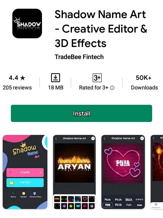 Shadow Name Art - An android app for editing photos & name brand with over 50000+ installs in playstore is a massive development by us.